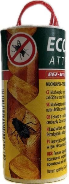 Az  ECOSTRIPE ATTRACTIVE  környezetkímélő csapda, amely ideális a házi rovarok ellen. Ez a termék nem tartalmaz rovarölő szereket. Használat: Csak húzza ki a piros szalagot a huroknál fogva a tokból, és akassza fel egy huzatmentes helyre.