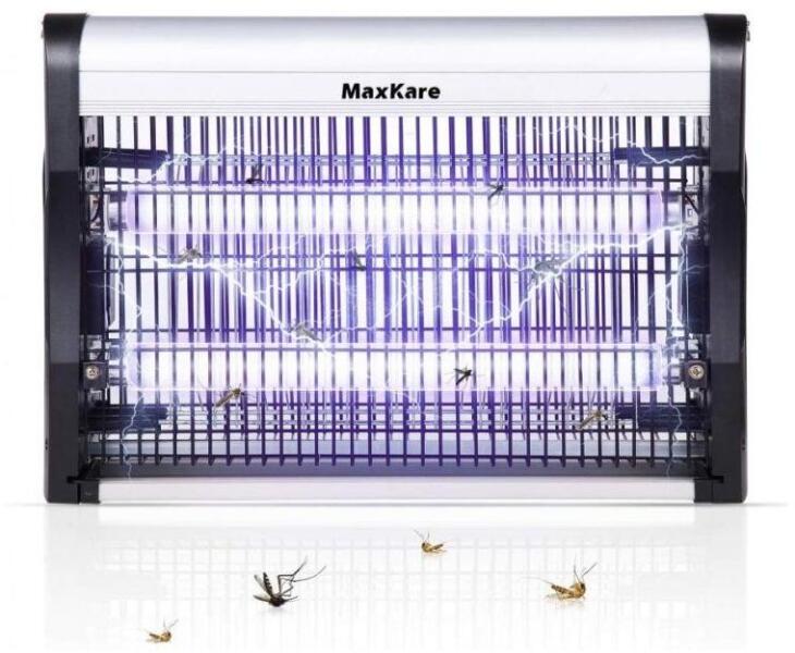 TermékleírásGyártó MaxKareModell  XHC-620AEA Maxkare elektromos rovarcsapda 2 db UV lámpával vonzza magához a rovarokat (20 W). Egy egyszerű és könnyed módja annak, hogy megszabaduljon a szúnyogoktól és nem kívánt rovaroktól. Vegyi anyagoktól és kellemetlen szagoktól mentes a szúnyogirtó gondoskodik arról, hogy családja egészséges maradjon, miközben óvja a környezetet. Csöves lámpáit kifejezetten arra tervezték, hogy hatékonyan vonzzák a szúnyogokat a belső rácsok felé, ahol egy nagyfeszültségű sokk elkapja őket, így Ön és szerettei nyugodtan tölthetik az éjszakát. Az elektromos szúnyogirtó teljes védőrácsokkal rendelkezik, amelyek teljesen megakadályozzák bármely testrész véletlen érintkezését a belső rácsokkal.  Az alsó levehető tálca jól összegyűjti az elhullott szúnyogokat a könnyebb eltávolítás érdekében. Ha nincs blokkolva, a beltéri szúnyogirtó fényforrása különböző irányokba szóródik, és 80 m2-en belül vonzza a szúnyogokat, így tökéletes otthon, irodában, konyhában, étteremben, garázsban stb. Az elektromos rovarcsapda tetején 2 gyűrű található, és egy lánc segítségével a falra rögzíthető.  Műszaki adatok